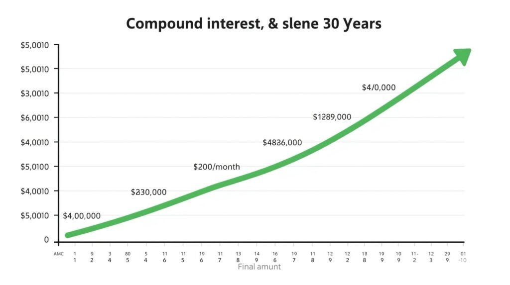 Say you invest $200 a month at 8% return. After 30 years, you could have over $300,000. Most of that comes from compound growth, not your deposits.